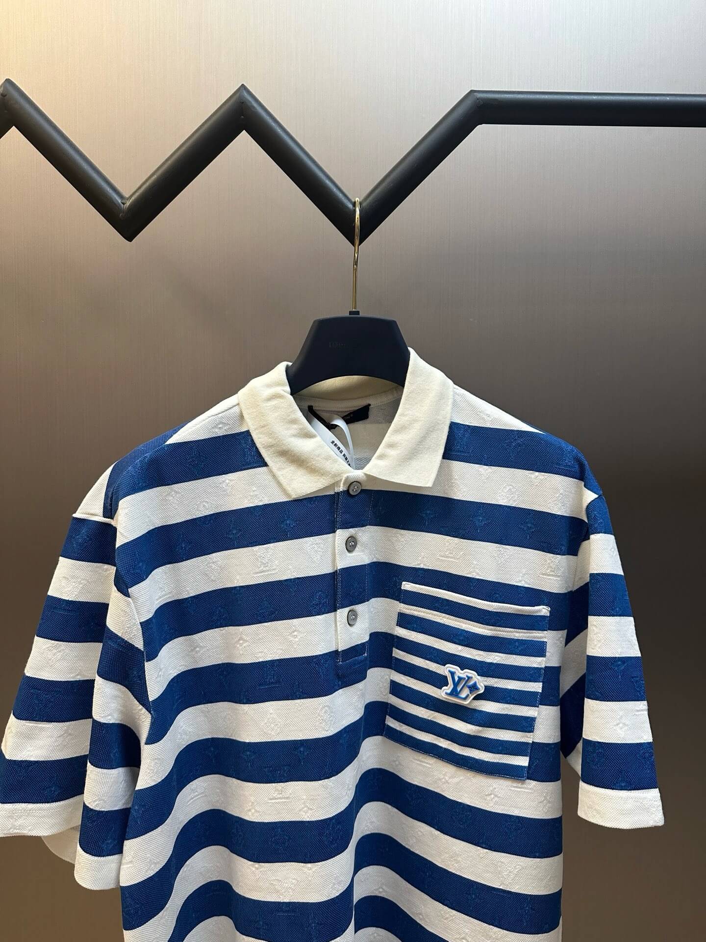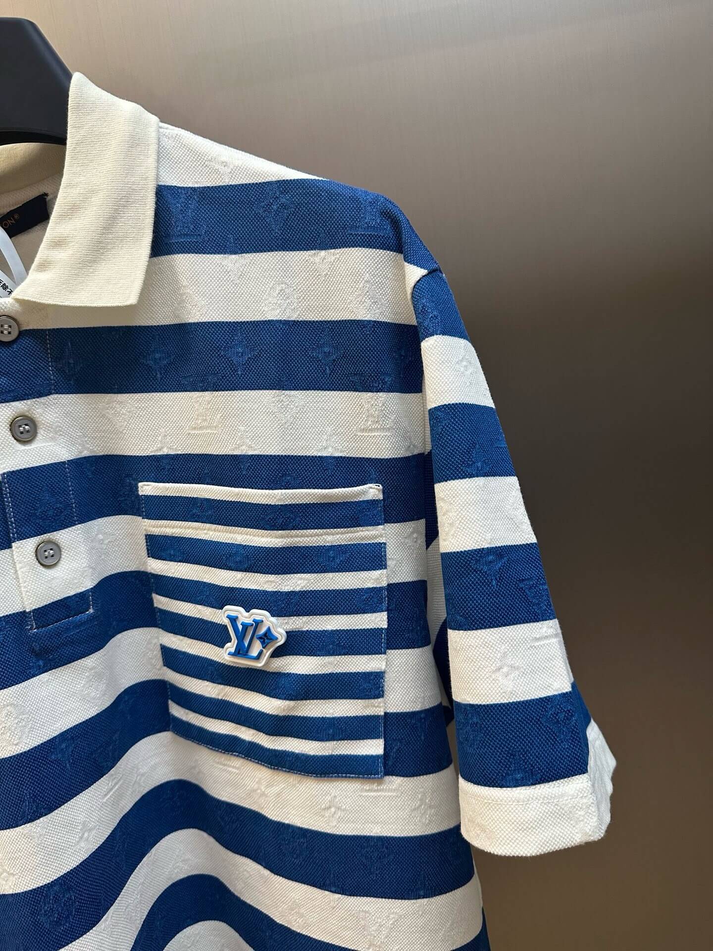 White and Blue Striped Polo Shirt