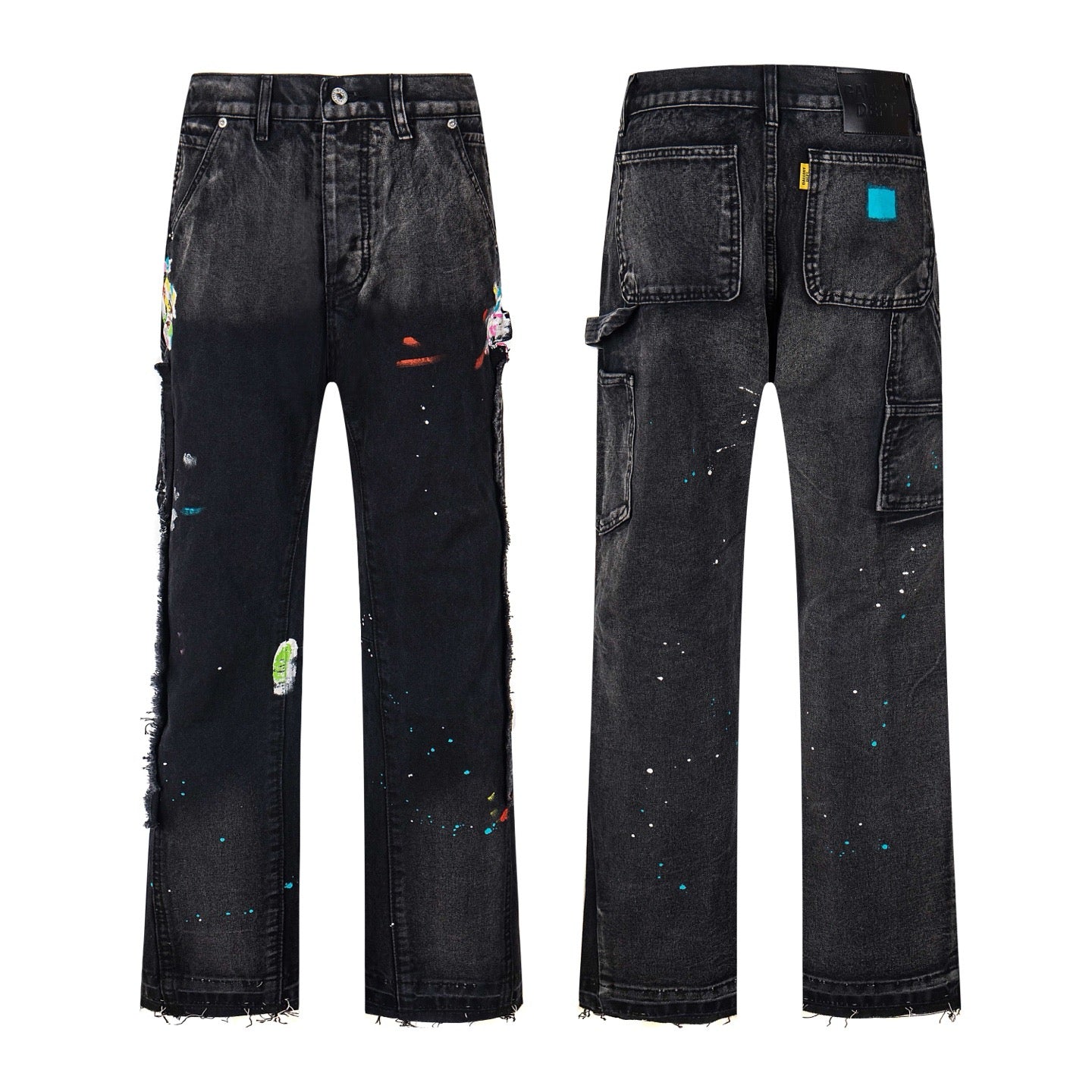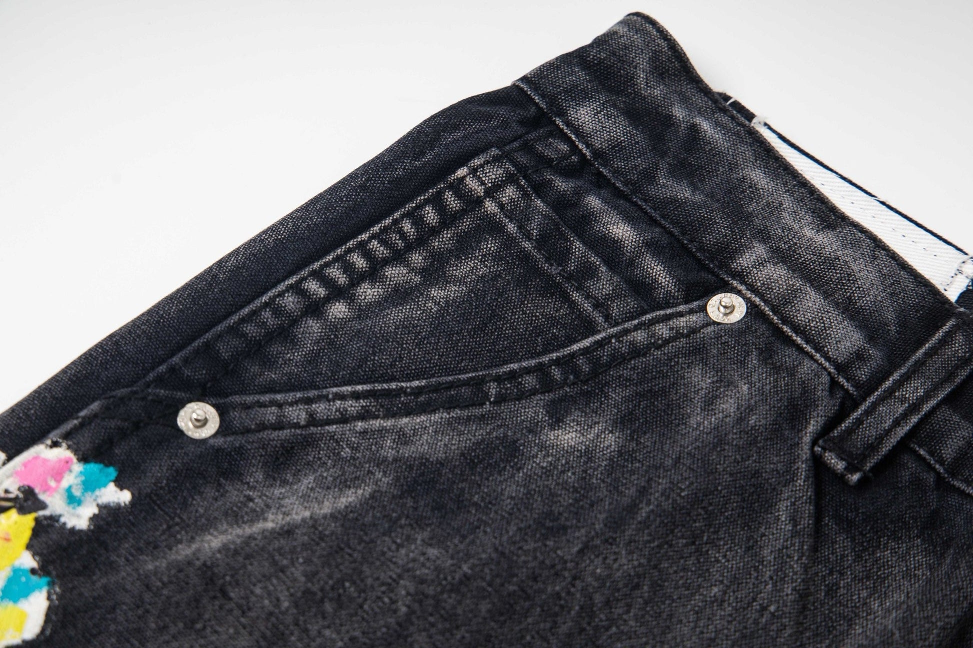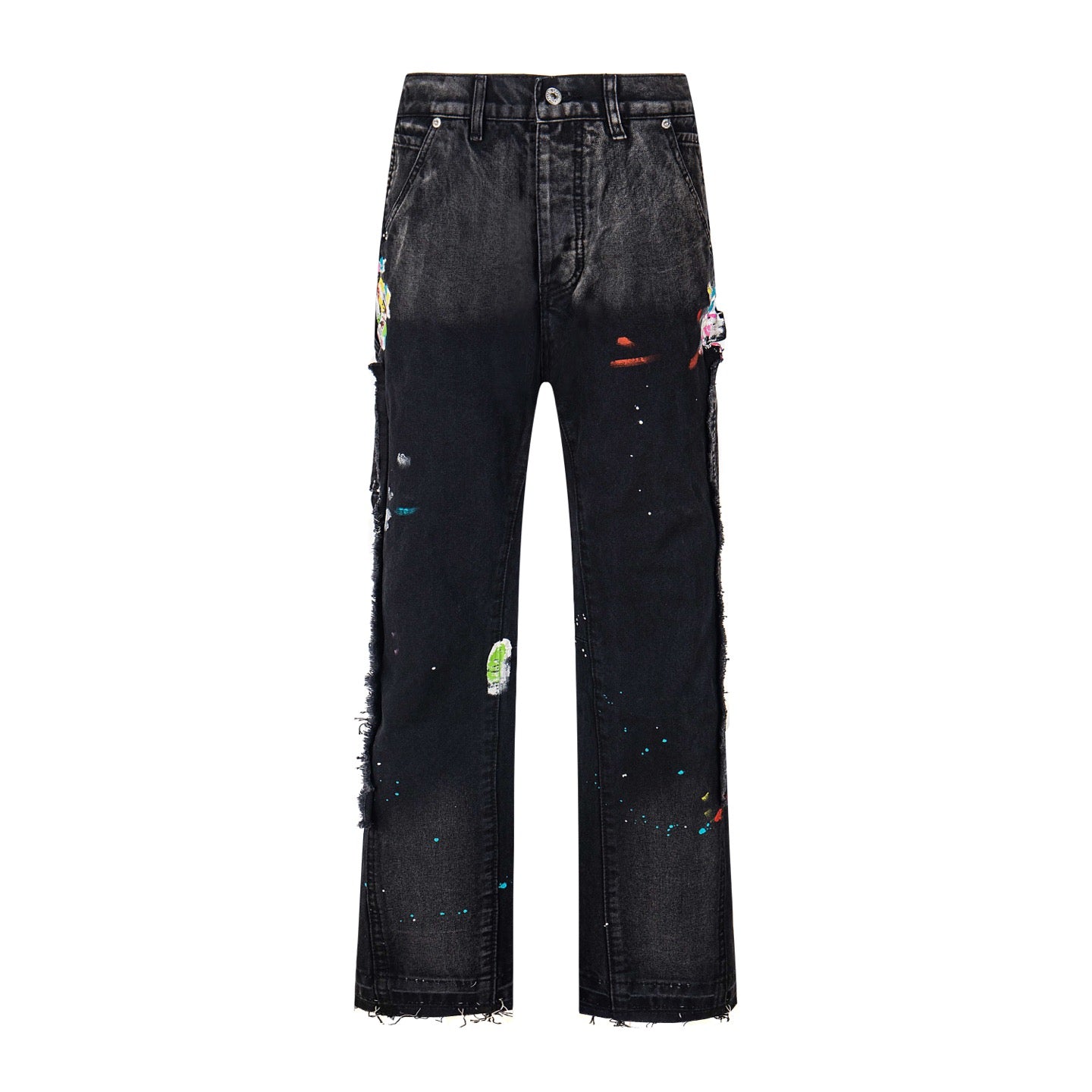Black Graffiti Splash Paint Washed Denim Pants