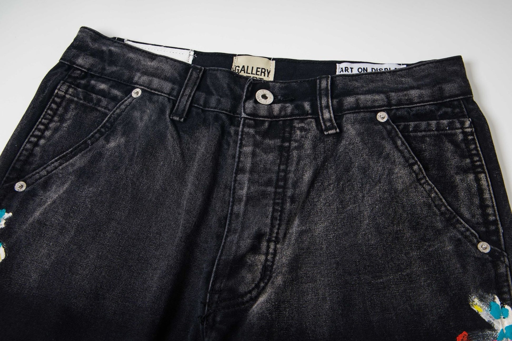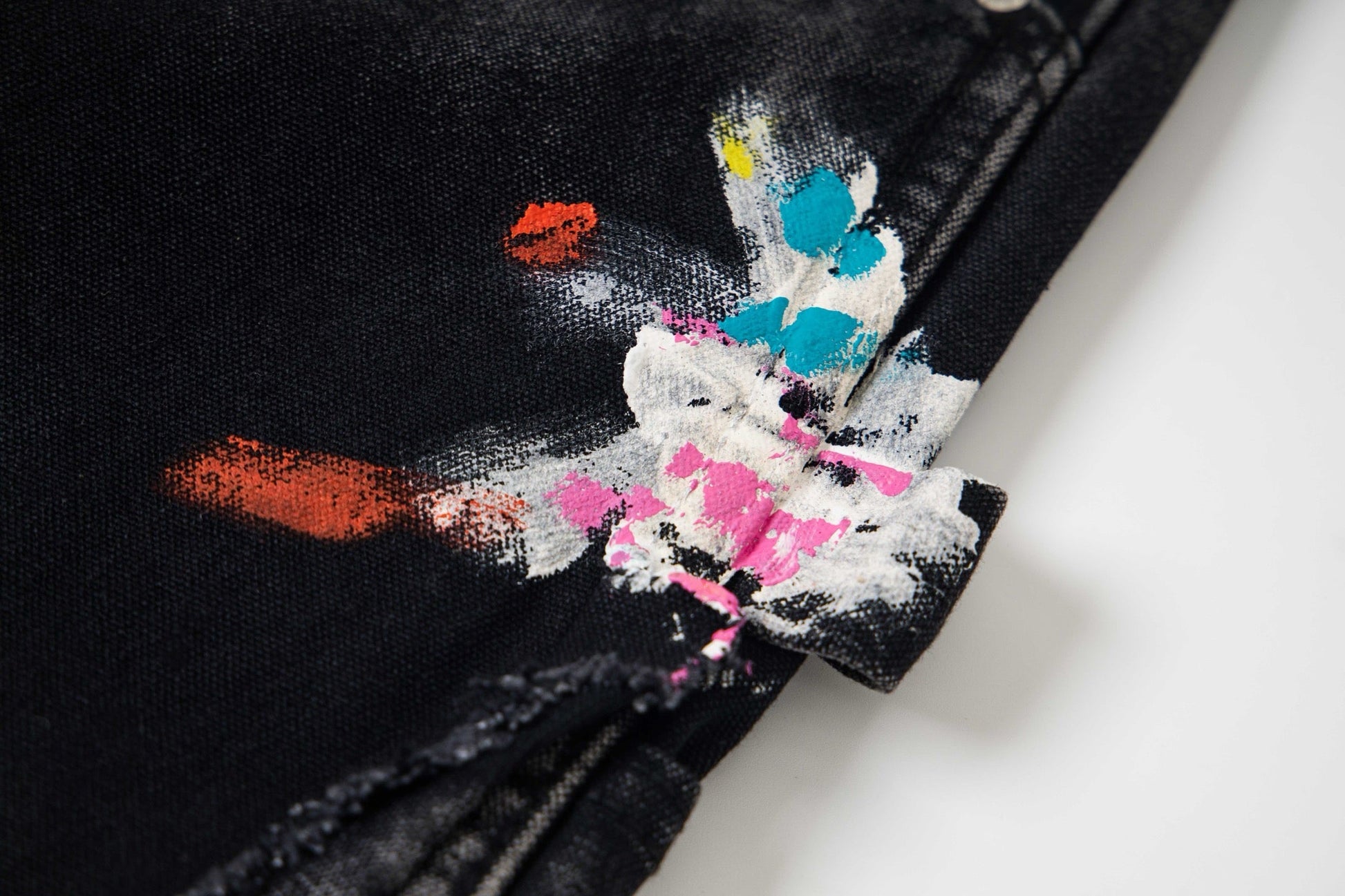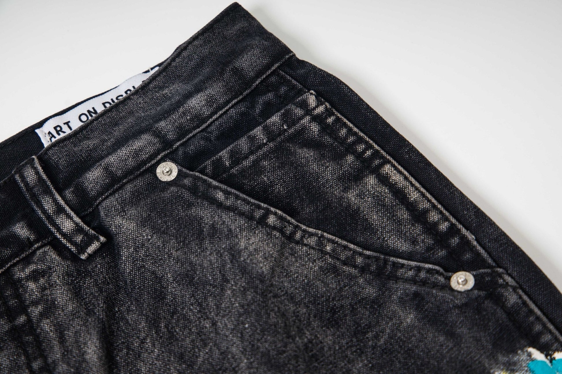 Black Graffiti Splash Paint Washed Denim Pants