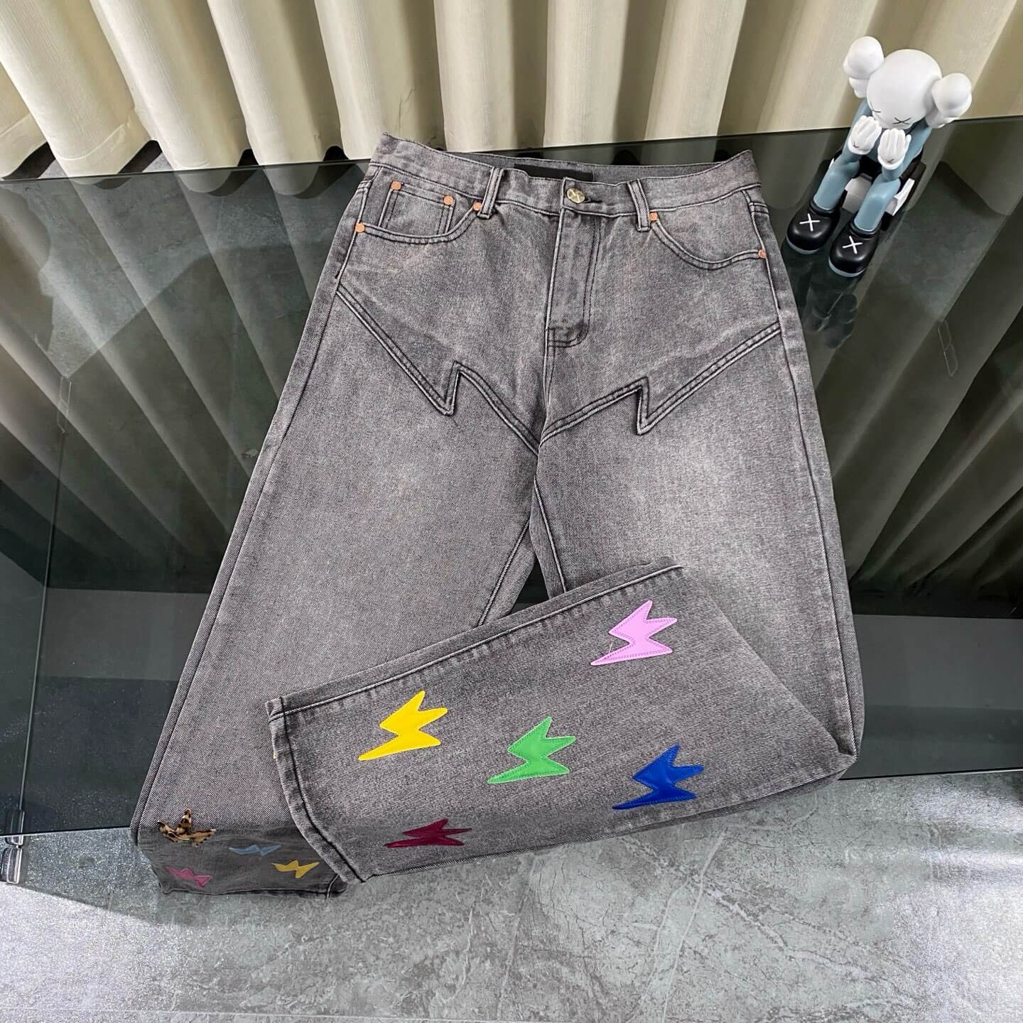 Colorful Patchwork Leather Jeans