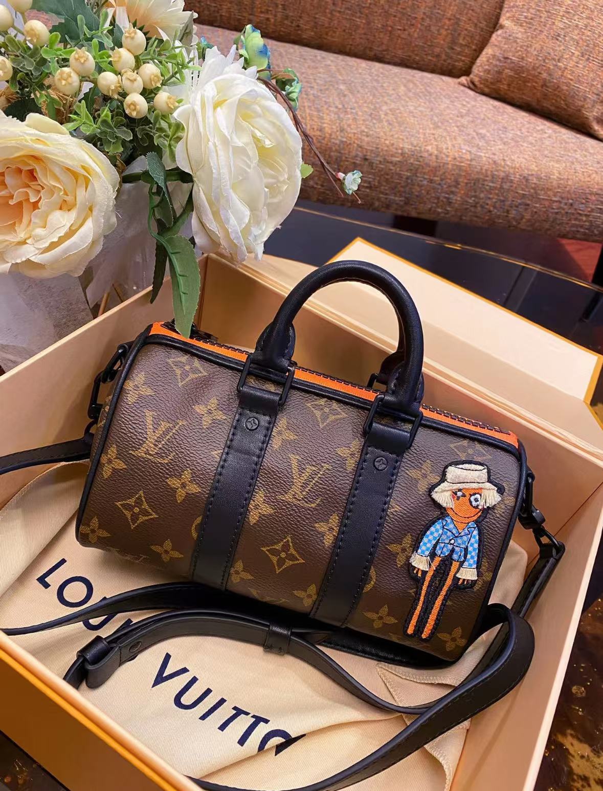 Embroidered Cartoon Character Leather Bag