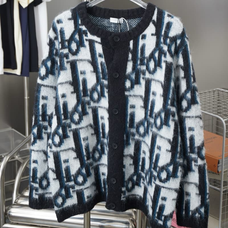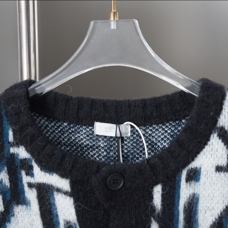 Mohair All-Over Jacquard Knit Cardigan Sweater