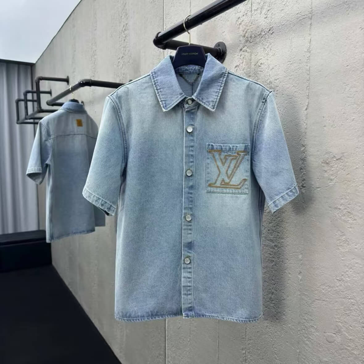 Pocket Letter Embroidered Denim Shirt