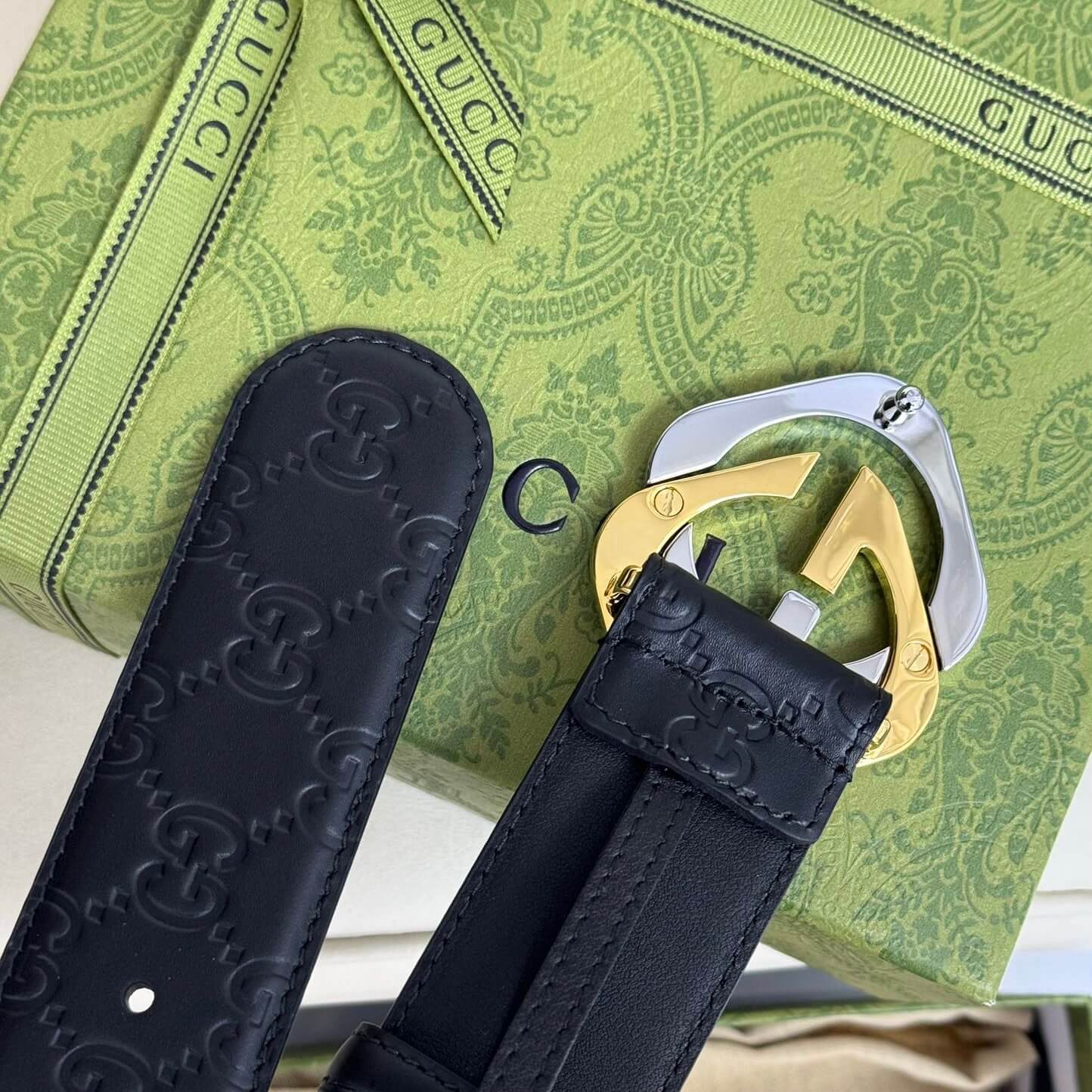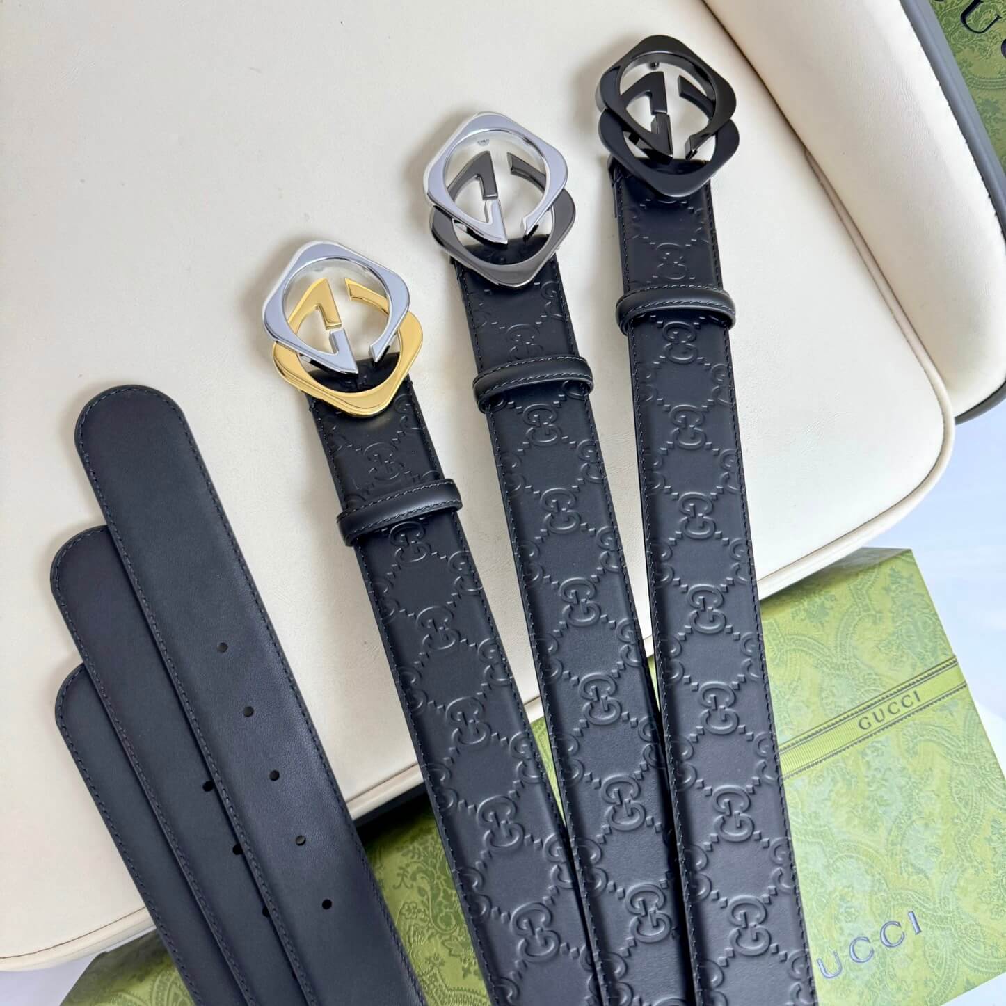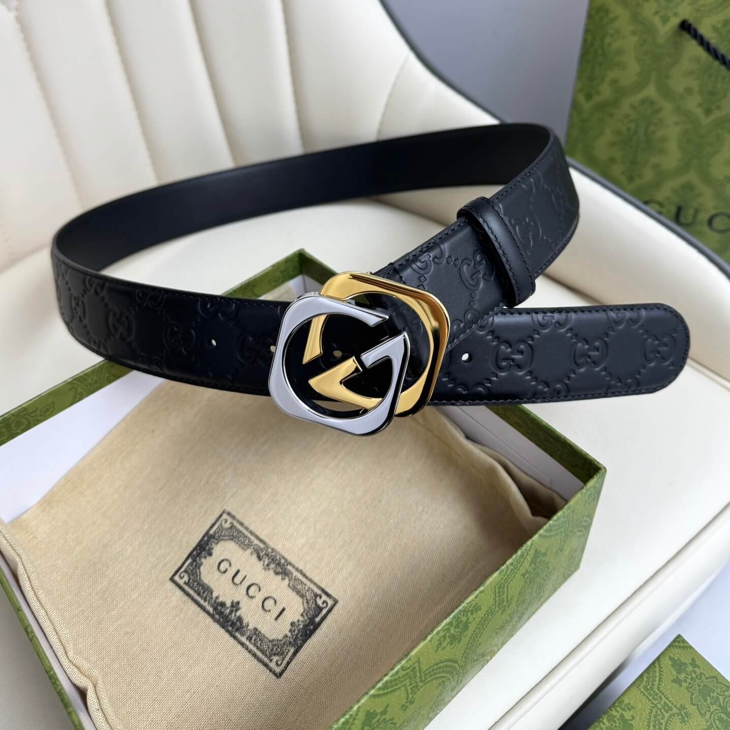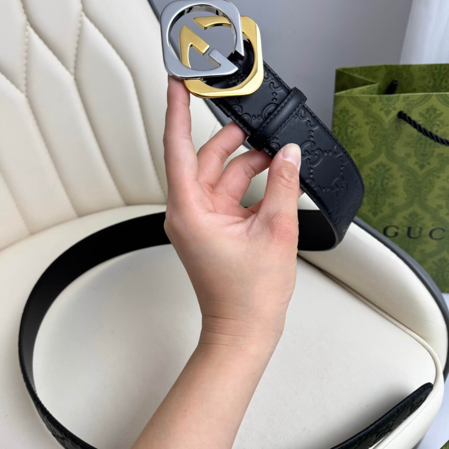 Stylish Two-Color Square Metal Buckle Belt