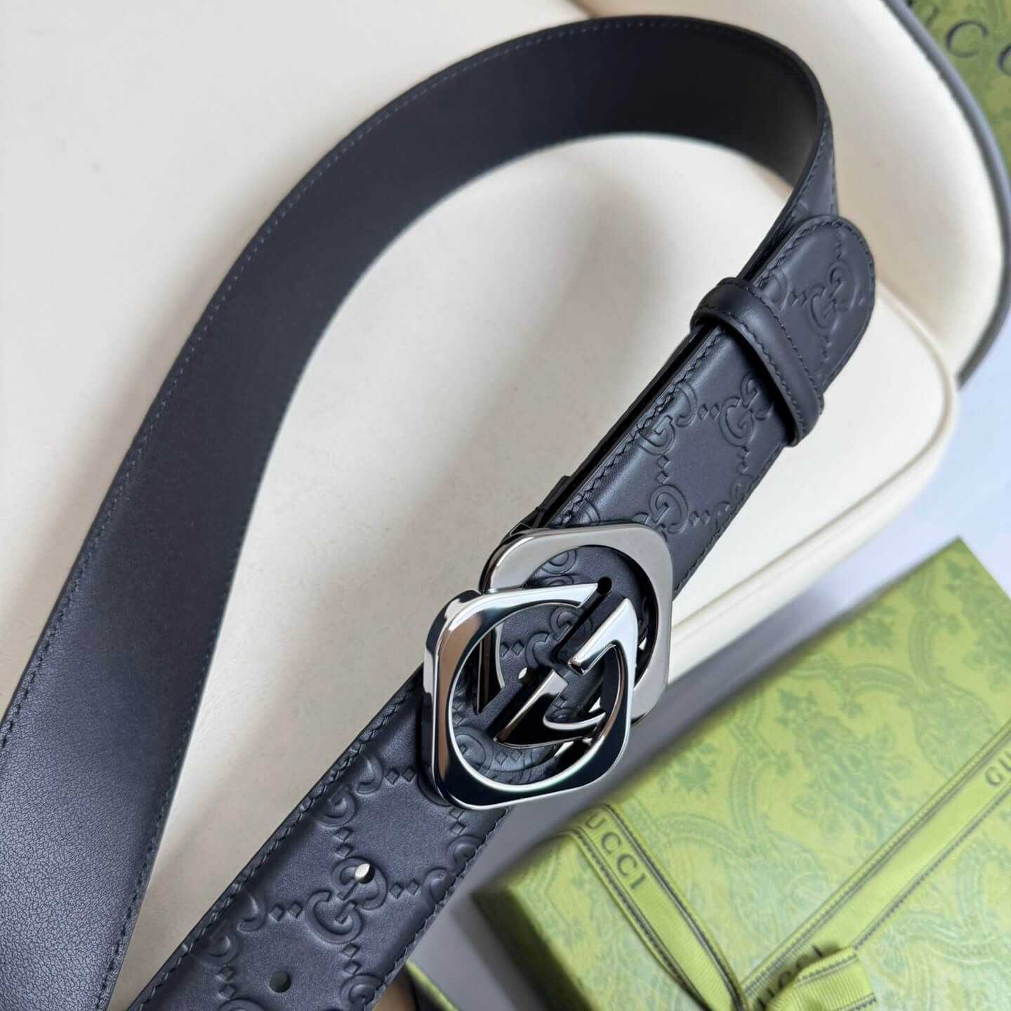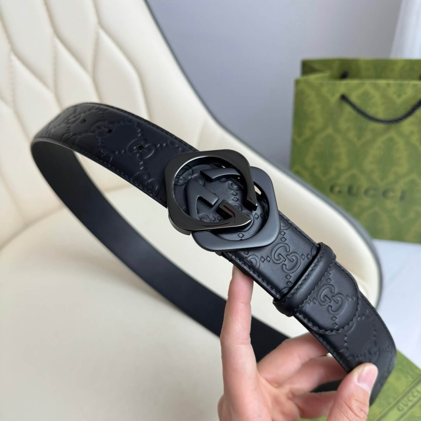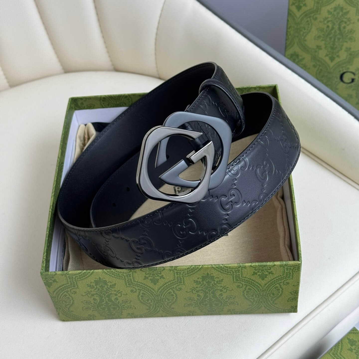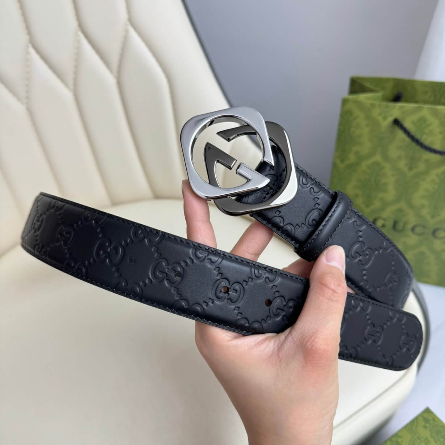Stylish Two-Color Square Metal Buckle Belt