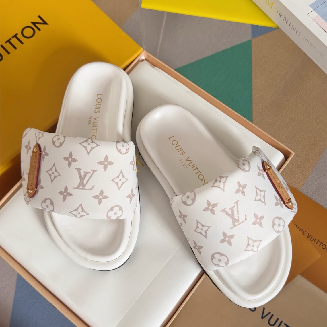 Women's White All-Over Print Slippers